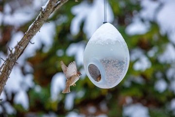 Za dvě ptačí krmítka dostali jejich autoři národní cenu za studentský design. Krmítko vyrobené podle požadavků ornitologů připomíná nafouknutý pouťový balonek. Do šikmého vletového otvoru se dostane jen jeden menší pták. Cílem je, aby se tam moc dlouho nezdržoval. Snižuje se tak riziko šíření chorob mezi ptactvem a do krmítka se nedostanou holubi a predátoři, uvedla Novotná.